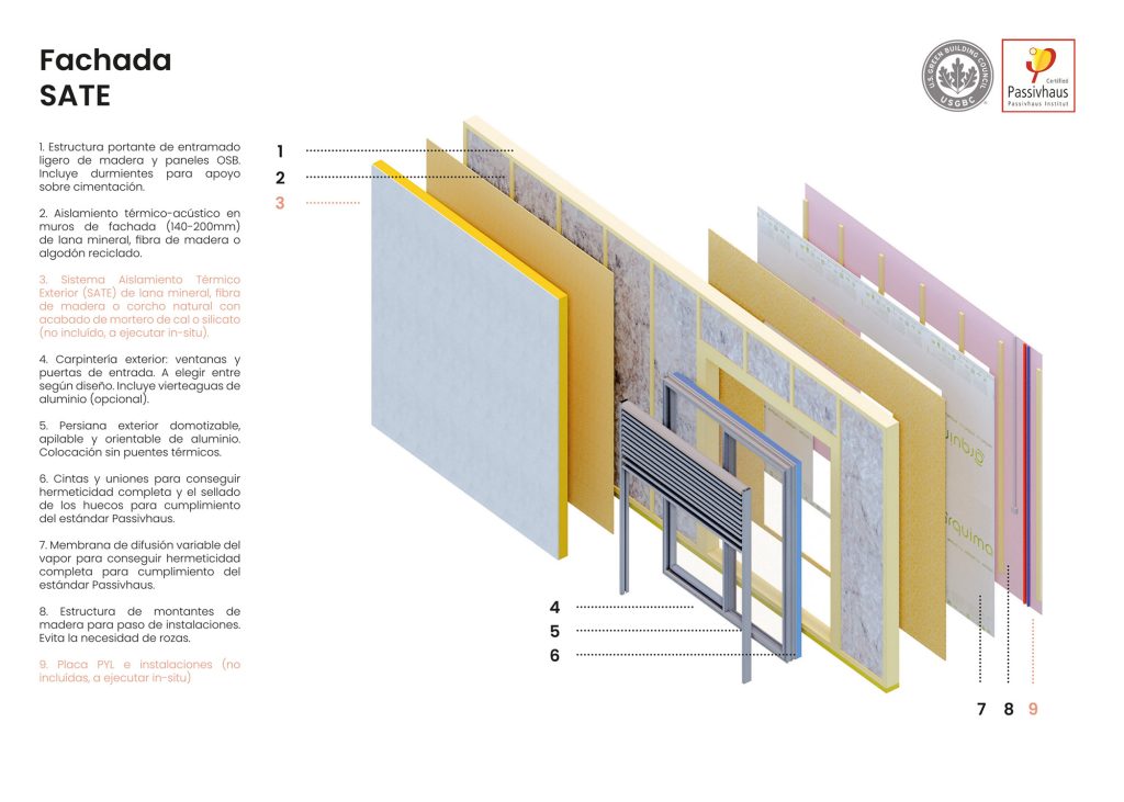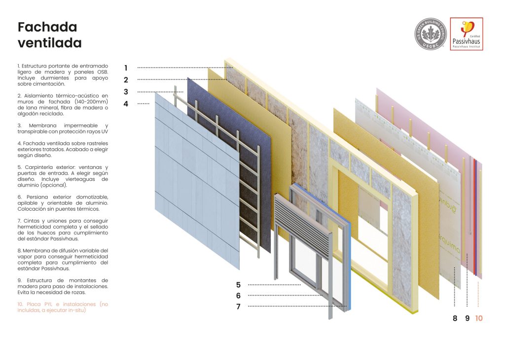 Eficiencia energética y estándar Passivhaus: garantizamos la máxima hermeticidad y aislamiento térmico, alcanzando los criterios del estándar Passivhaus.