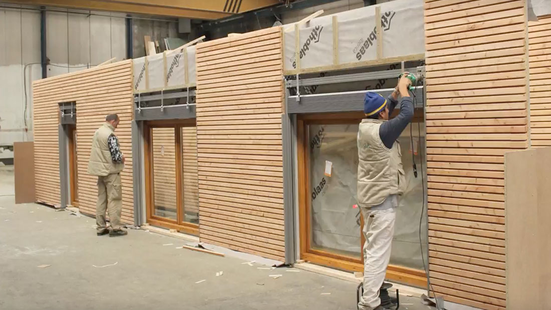 Para el revestimiento de la fachada se optó por madera de alerce natural sin albura, mientras que para la carpintería exterior se utilizó madera de iroko. El proceso de fabricación por parte de ARQUIMA se realizó en taller y el montaje de la envolvente se realizó en tan solo una semana.