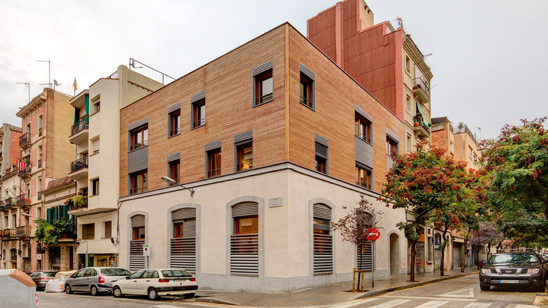 Este singular inmueble, de 450 m² construidos, con un total de 6 viviendas y una altura de 4 plantas más una cubierta transitable está construido bajo criterios sostenibles, dispone de 4 hojas sobre 5 del Certificado Verde del GBCe (Green Building Council España) y está ubicado en el barrio barcelonés del Poble Sec. Consta de dos viviendas por planta, con superficies de entre 50 y 70 m² de uno o dos dormitorios, destinadas a alquiler.
