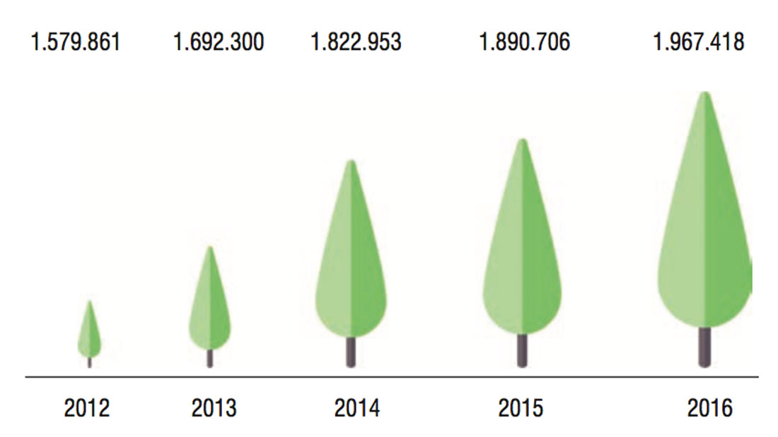 El año 2016 ha supuesto la consolidación de la certificación de la Gestión Forestal Sostenible PEFC en España con un aumento del 4% con respecto al año anterior alcanzando cerca de 2 millones de hectáreas. Esta superficie, que supone un 11% de la superficie forestal arbolada en España, está gestionada por más de 19.000 selvicultores y gestores.