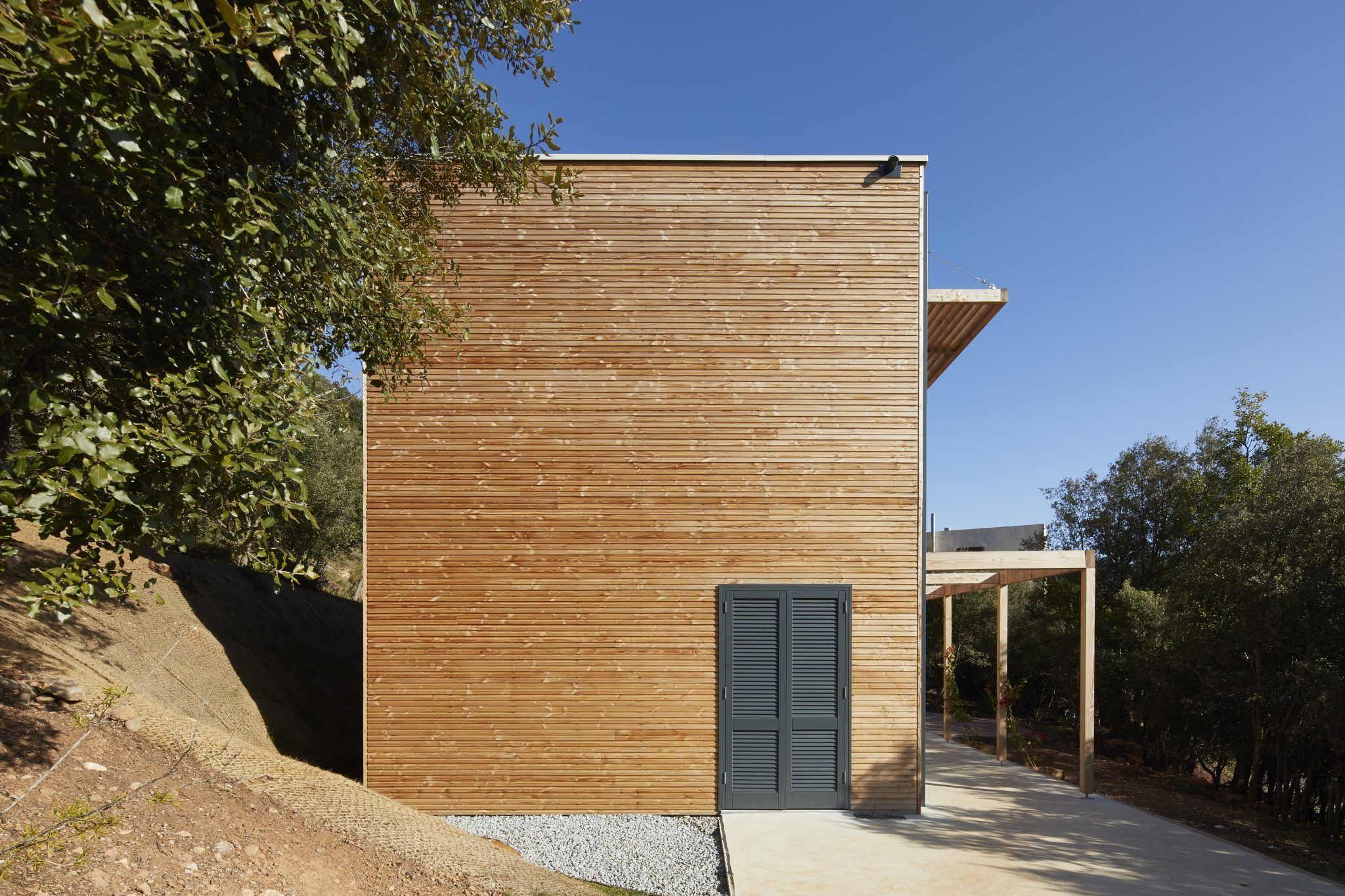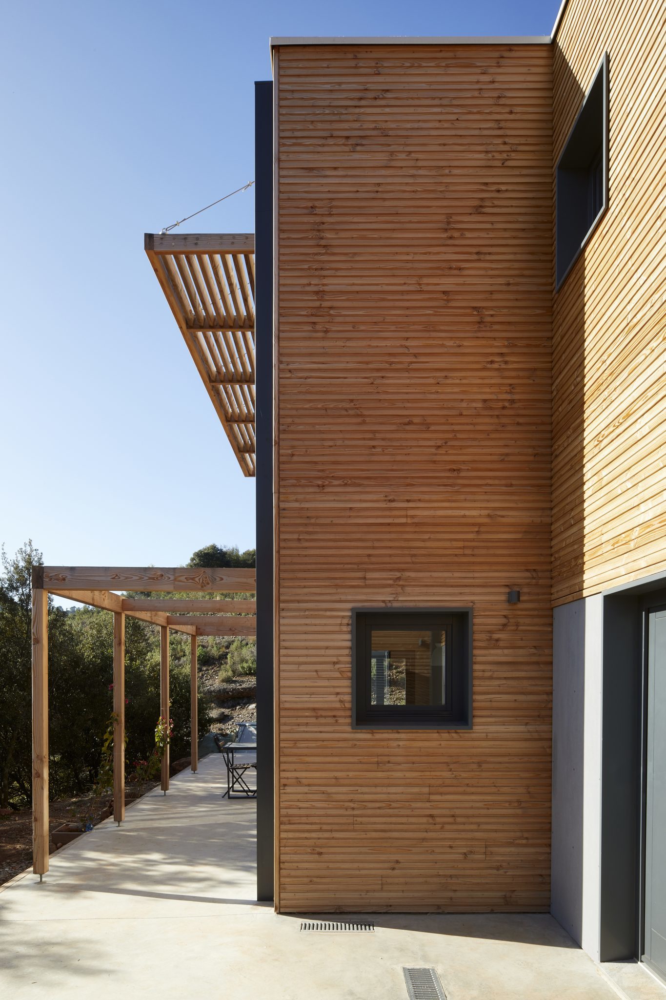 Esta vivienda eficiente en Matadepera se concibe como una arquitectura en equilibrio con el entorno natural que la rodea, donde la madera y los materiales sanos no son un recurso estético, sino una decisión técnica y ambiental consciente.