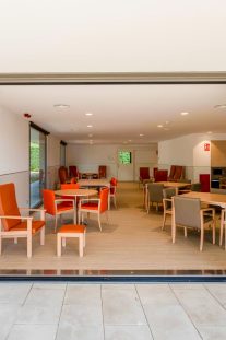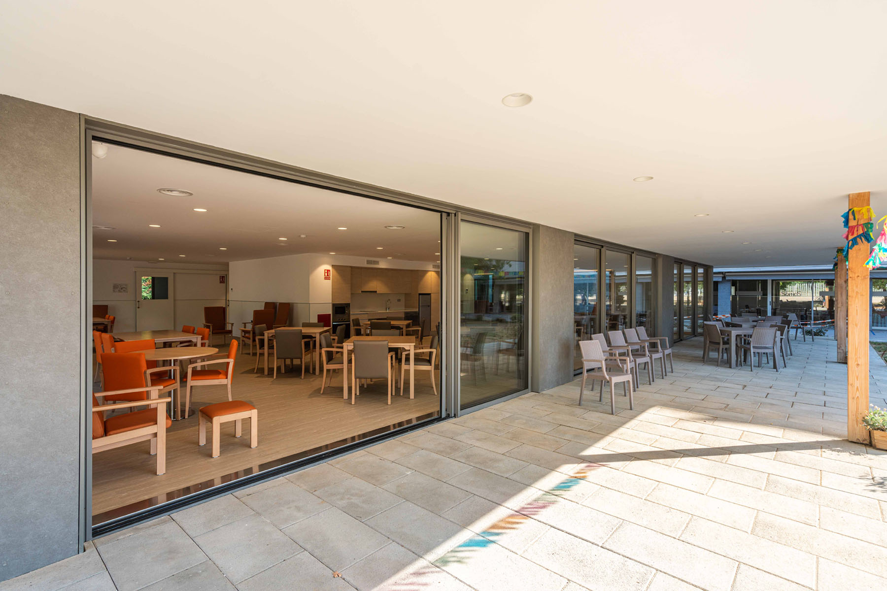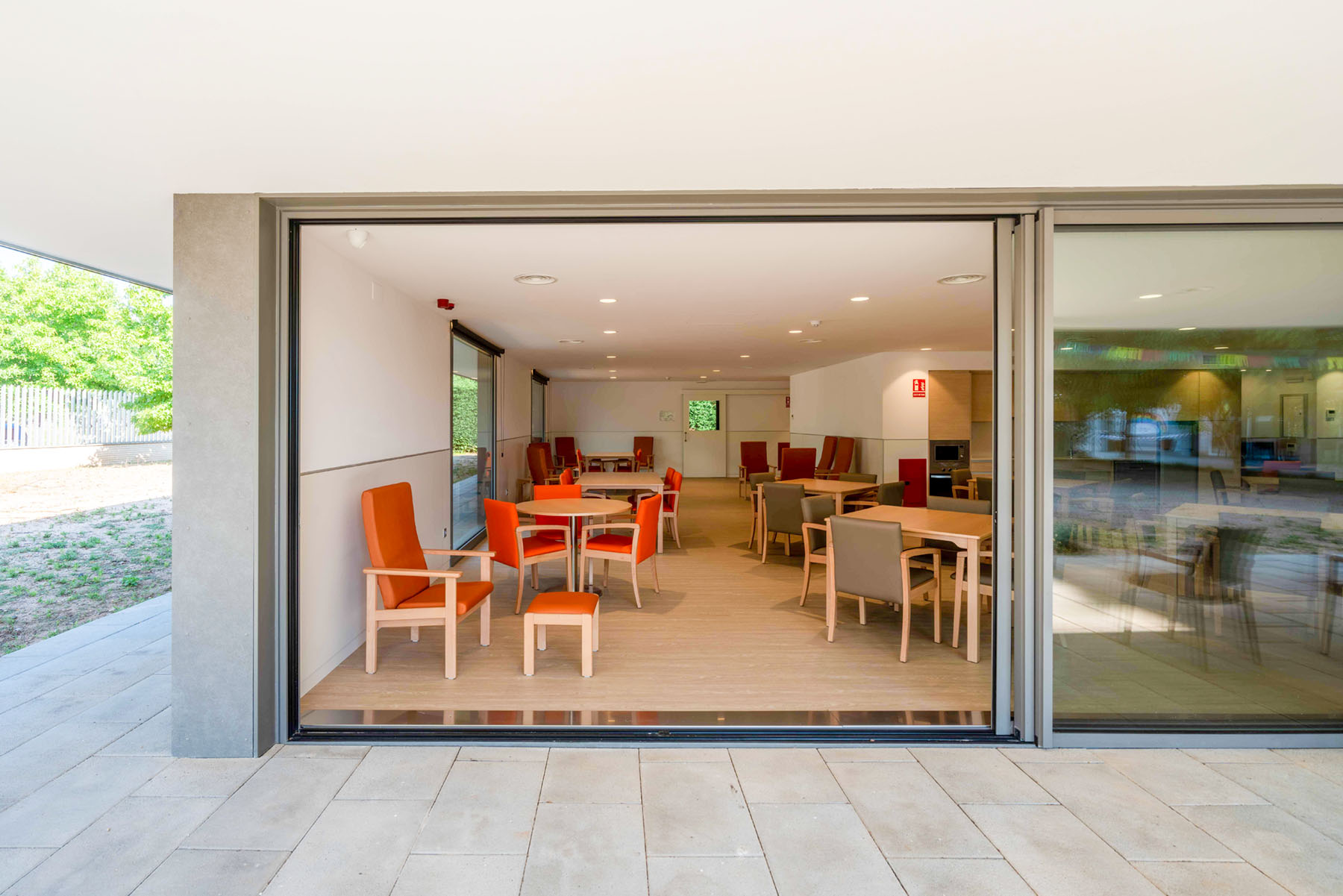El proyecto incorpora un nuevo centro de día, diseñado desde los principios de la Arquitectura Centrada en la Persona, metodología propia de B\TA, que sitúa a las personas y sus necesidades físicas, emocionales y sociales en el centro del proceso de diseño.