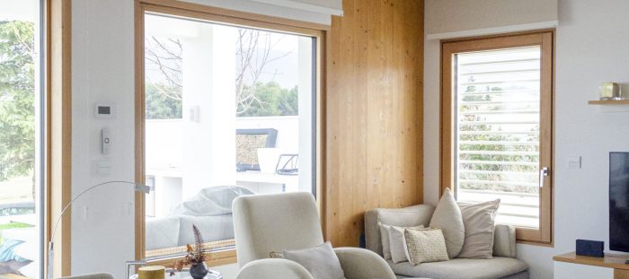 Casa Dénia se apoya en criterios de alta eficiencia energética y sostenibilidad, inspirados en el estándar Passivhaus. La envolvente, resuelta mediante sistemas industrializados en madera y materiales renovables, reduce la demanda energética y garantiza un elevado confort interior en cualquier estación.