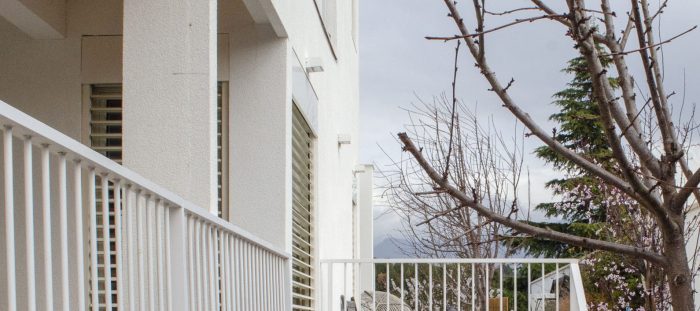 La vivienda se posa con serenidad sobre el paisaje luminoso de Dénia, integrándose con la naturalidad de quien entiende el territorio y lo respeta. Sus volúmenes blancos, de líneas puras y proporciones horizontales, dialogan con la luz mediterránea y reflejan el sol sin imponerse sobre el entorno. La arquitectura no compite con la vegetación; la acompaña. El porche, sostenido por pilares esbeltos y protegido con lamas de madera, filtra la radiación y genera sombra bioclimática, reduciendo la demanda energética y favoreciendo el confort pasivo.