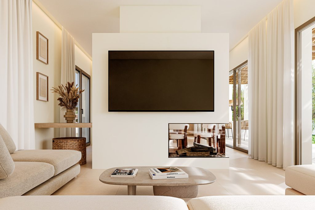 Desarrollada en una sola planta, Casa Dénia apuesta por una forma de habitar cómoda y accesible, con una distribución funcional que aprovecha la orientación solar, la ventilación cruzada y las visuales abiertas hacia el Montgó y, en determinados puntos, hacia el mar. Los espacios interiores se prolongan hacia el exterior mediante terrazas y zonas de estancia, favoreciendo una vida al aire libre durante todo el año.
